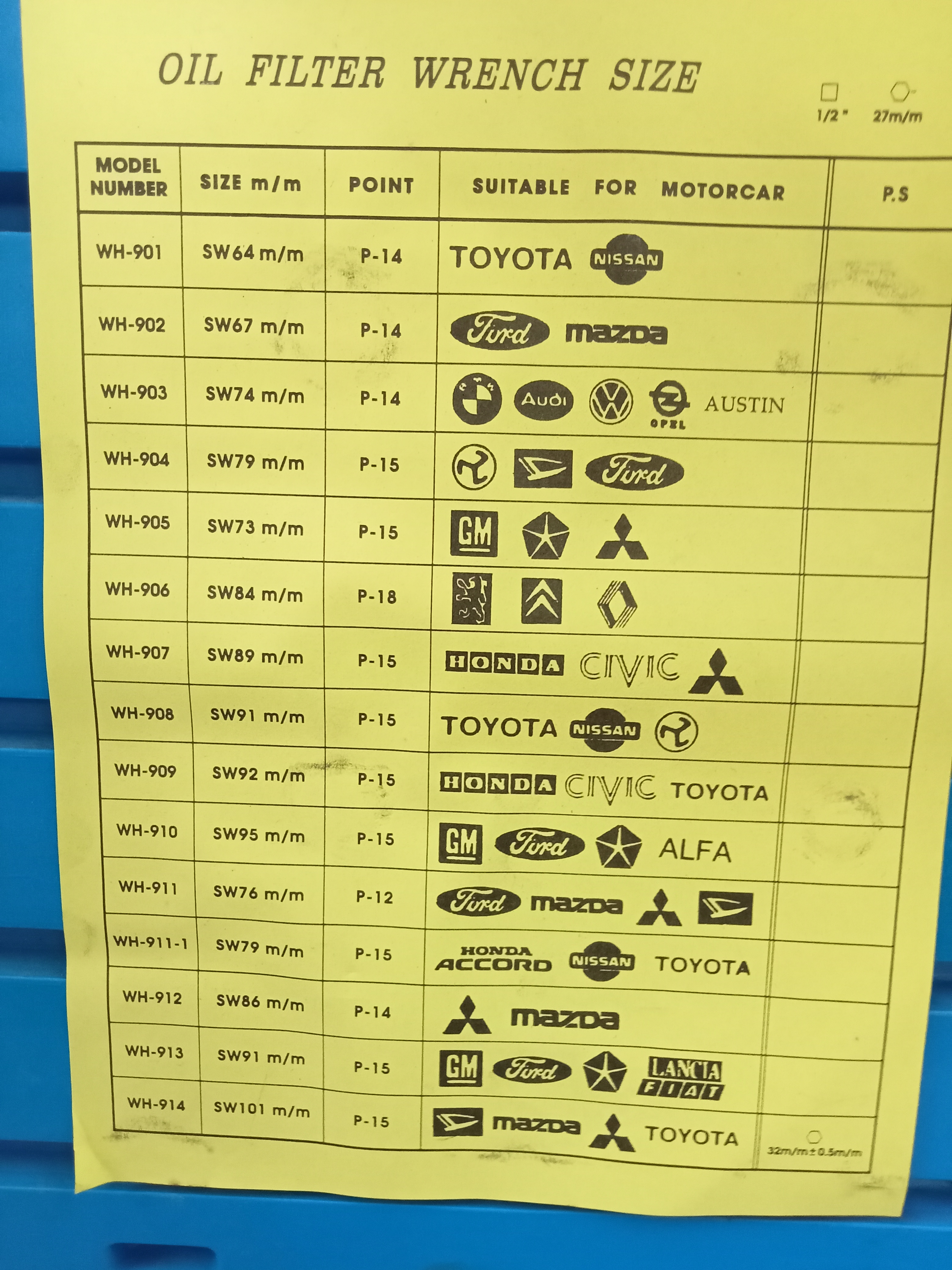 CAR OIL FILTER CAP WRENCH KEY SET 17 PCS TAIWAN WOLF'S HEAD